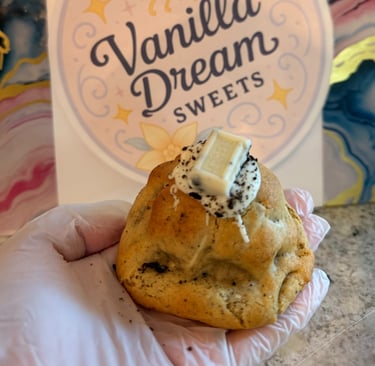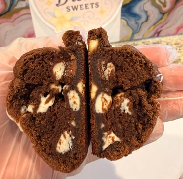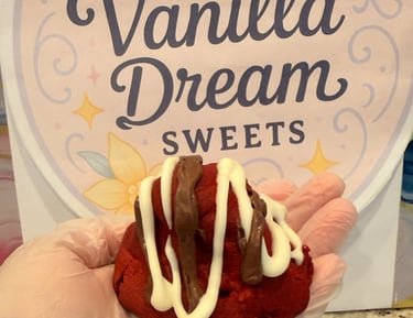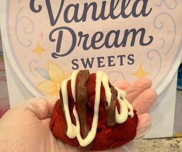 Our Red Velvet Dream is a decadent treat for chocolate lovers and red velvet fans alike. Each cookie is handcrafted with a rich, velvety dough and loaded with creamy white chocolate and smooth milk chocolate chunks, creating the perfect balance between cocoa flavor and sweetness.