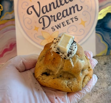 Our Cookies & cream New York cookies is the ultimate comfort treat - thick, chewy, and packed with creamy and crunchy Oreo cookies pieces. Every bite is a perfect mix of chocolate and vanilla goodness.